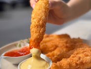 tuniak, mango, krabia tyčinka, vyprážaná v tempure a panko strúhanke, preliata tobiko prelivom -
